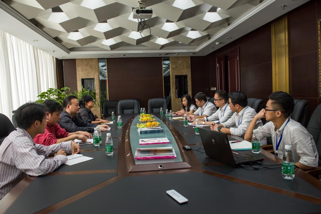 岳湛在随后的交流过程中谈到,双方通过三年的合作已经有了很好的合作基础,同时三年的合作也取得了一定成绩。岳湛提出三点建议:一、双方共同探索产教结合机制创新,将企业文化注入人才培养全过程;二、加强教学互动,深入教学合作;三、校企共同打造大学生创新创业人才孵化项目的进行。双方就以上三点建议深入交换意见并现场落实专人进行对接。座谈结束后,刘洁一行陪同岳湛参观了爱恋珠宝公司总部,并详细介绍了各职能部门的情况。