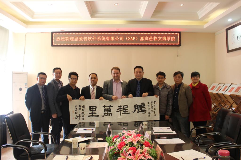 参加本次座谈交流的有SAP渠道经理陈卓宏、四川盛普信息技术有限公司总经理夏波及我院相关部门负责人。