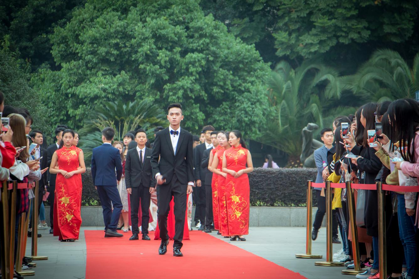 盛典上副院长袁干劲上台为上一届团学青社学生干部颁发了获奖证书并讲话。他说,看了同学们的表演和展示,很感动,也甚感欣慰。同学们用辛勤的劳动,善于创新的思维,成就了今天丰富而新颖的节目。他还用著名画家潘天寿以小见大的画风来比喻本次主题活动采用了以小见大的手法和创新精神,依托婚庆专业特色,充分发挥婚庆专业学生的才华,把一个普通的换届工作同纪念红军长征精神结合起来,做成了盛典,做出了文化特色,很了不起,特别是这次盛典举办中所体现的团队精神对学院学生干部工作的承上启下,继往开来起到了很好的示范和推动作用。