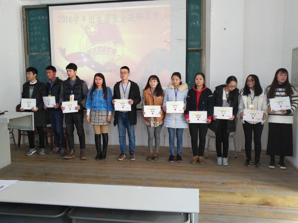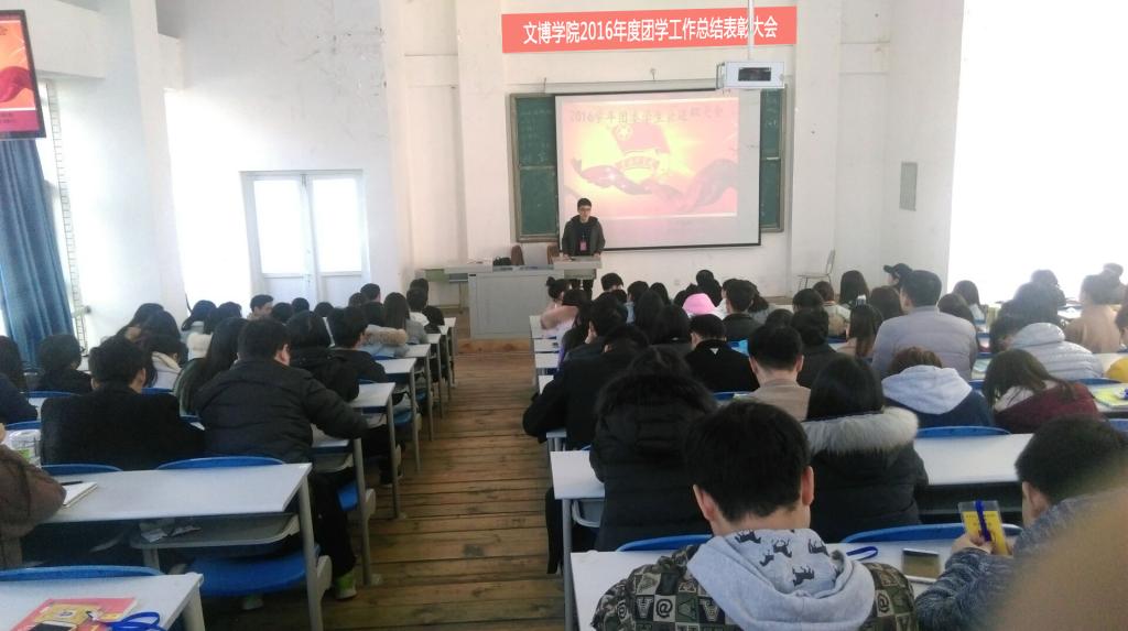 12月28日中午,我院在第三教学楼213举行了2016年团学工作总结表彰大会。我院副院长袁干劲、学生科负责人王力,全体团学干部及干事共200余人参加了会议。