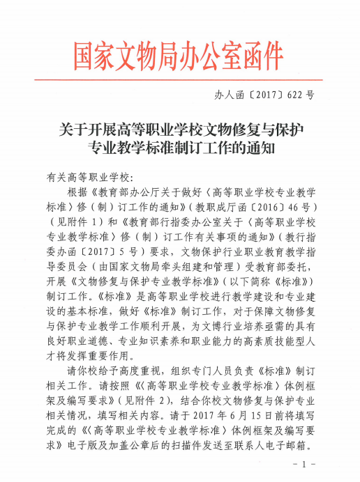 近日,文博学院收到国家文物局函件,知悉学院文物修复与保护专业教研室受邀参与国家文物局牵头的《文物修复与保护专业教学标准》制定工作。