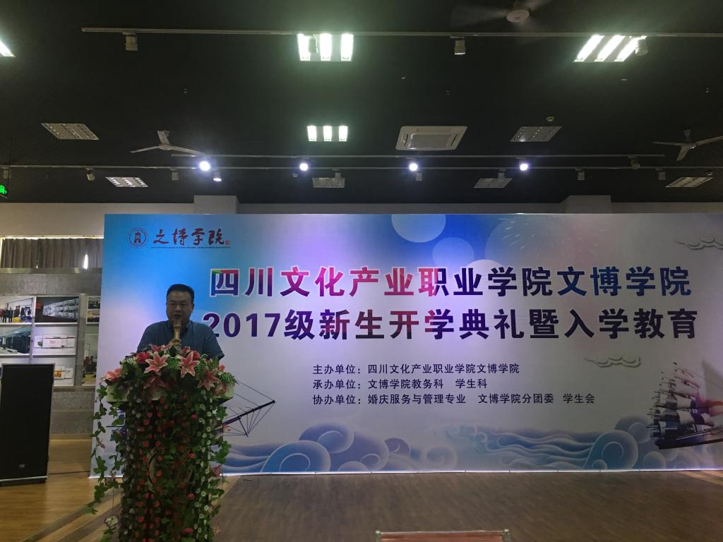 新学期,开启新希望,承载新梦想。9月22日,我院在图书馆四楼举行了2017级新生开学典礼暨入学教育。文博学院院长岳湛,对外合作交流中心主任陈其余,教务科科长陆盈,学工科负责人王力,企业代表追银族股份有限公司人力资源总监唐薇,以及文博学院教师代表,老生代表以及全体2017级新生参加了本次典礼。