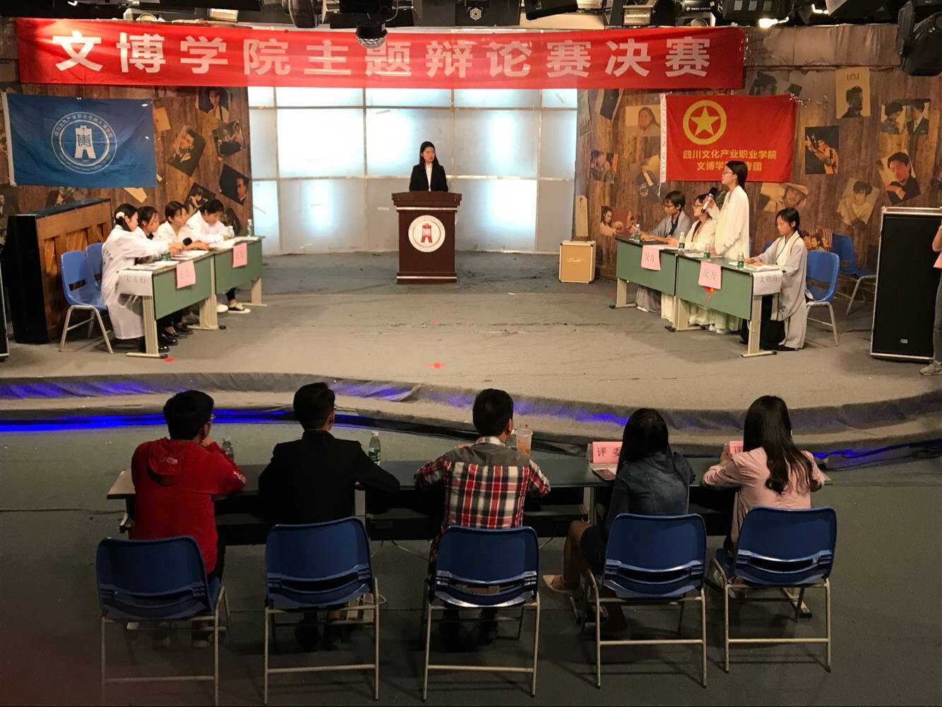 4月8日晚,文博学院在新演播中心举行了第一届主题辩论赛,我院学子以班级为单位对战,以慷慨激昂的言辞,精辟的论点展现了文博学子的风采。