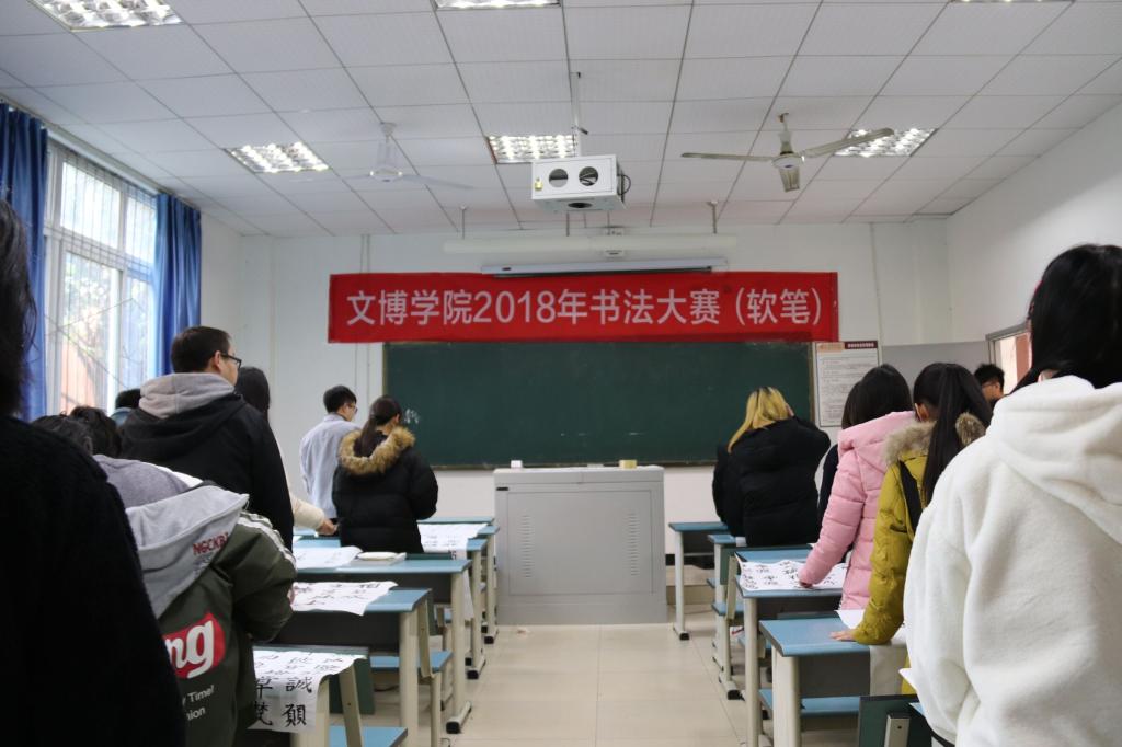 11月26日中午,我院2018“泱泱华夏 笔下游龙”现场书法比赛分别在翰林书法室和三教213开展,此次比赛分为硬笔书法和软笔书法两个项目,近200名同学参与了比赛。