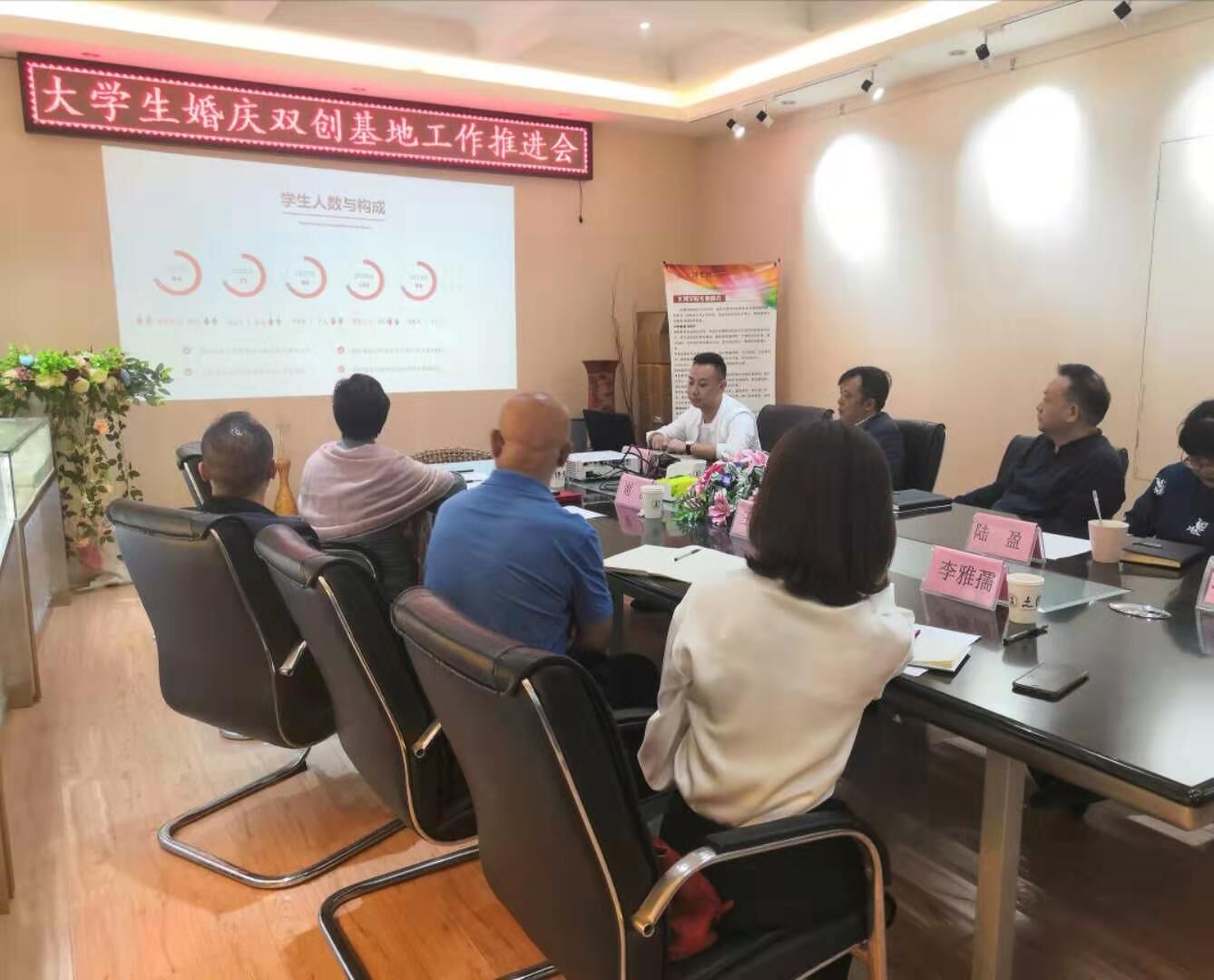 推进会就大学生婚庆双创基地项目的创建与前期筹备工作为核心内容展开。会议确定我校文博学院作为大学生婚庆双创基地的实践基地,婚庆行业主持人、化妆师、策划师等企业职位职业资格专业认证事宜,表示可与学院通过实训室建设与开发、婚庆相关产业学生工作室、婚庆专业课堂教学等具体形式展开。