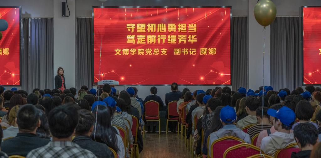 金秋十月,文博学院喜迎291名新同学。为引导新生快速适应大学生活,融入文博学院大家庭,2020年10月16下午文博学院在学校图书馆四楼举行了2020级新生入学教育暨师生见面会,大会在分团委舞佳舞社团劲歌热舞中拉开序幕。文博学院院长岳湛、党总支副书记糜娜、副院长陈其余、部分专业老师及全体辅导员参加大会,本次大会特邀学校对外交流合作处副处长李扬参会。