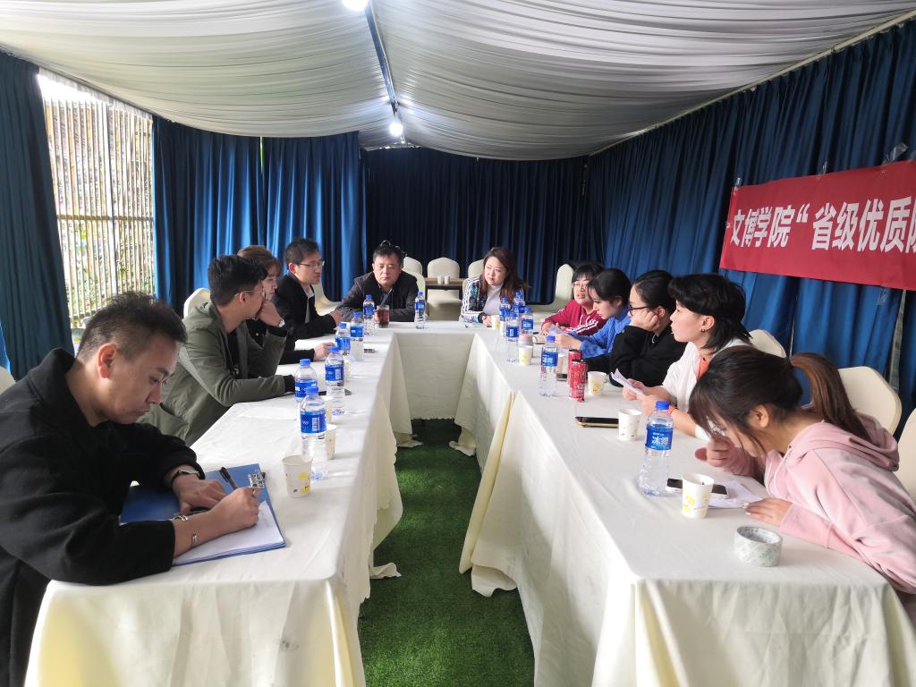 2020年11月22日下午2:00,文博学院全体教师在三圣乡伊亚团建基地召开’省级优质院校建设工作’总结会,全体教职工参加会议,文博学院教务科长陆盈主持会议,副院长陈其余出席会议。
