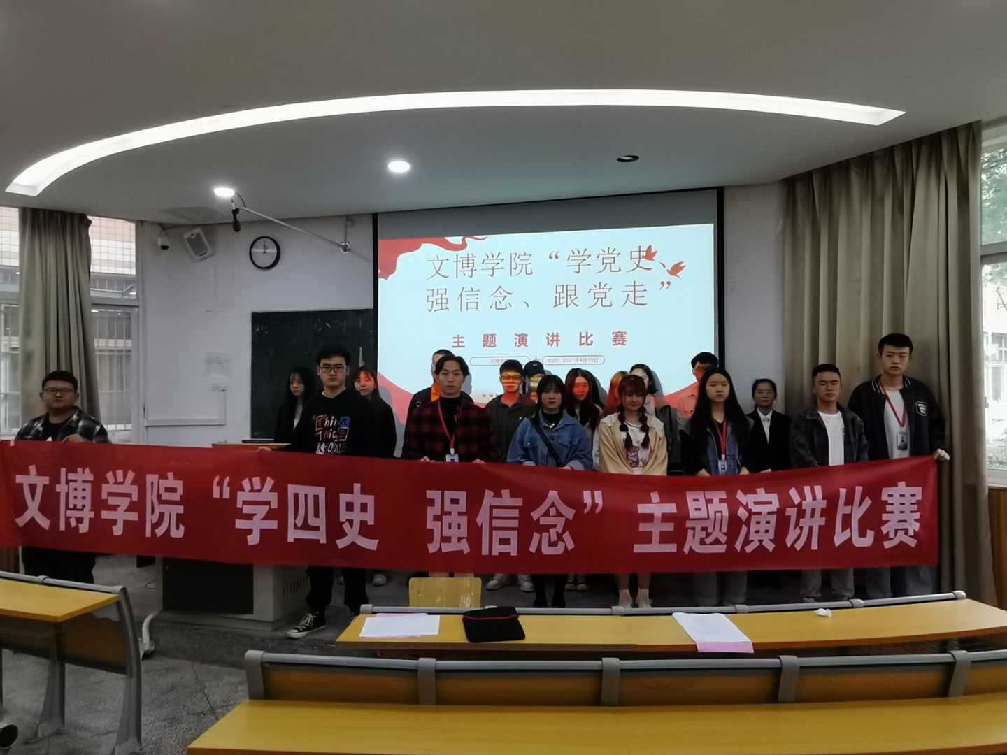 百年征程,波澜壮阔,百年初心,历久弥坚。为庆祝中国共产党建立100周年,深入推进“四史”学习教育,筑牢不忘初心、牢记使命的思想根基,4月19日中午,我院在一教一阶开展了以“学四史,强信念,跟党走”为主题的演讲比赛。 此次比赛共9名参赛选手,由婚庆专业负责人曾烛老师担任主要评委,约100余名同学到场观看学习。