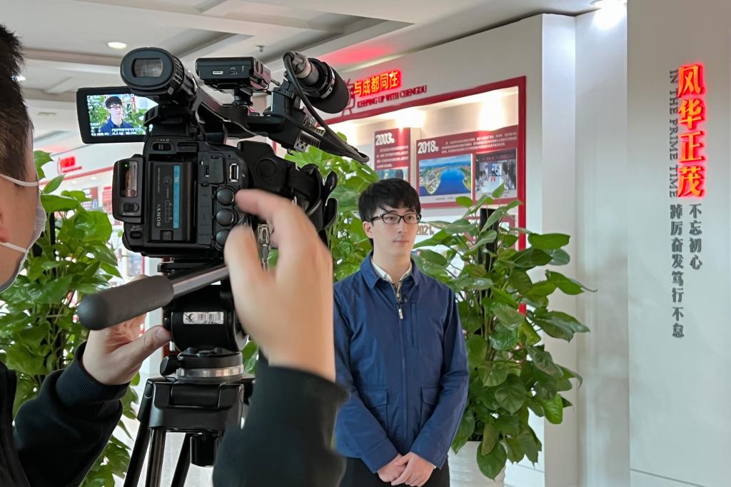 姜旭在采访中,从款式、色彩、面料“形态设计”和历史文化、价值观念、人文情怀、审美哲学“内涵设计”两方面讲述了羊绒服饰产品的创意设计,通过“羊绒+非遗”“羊绒+天府文化”阐释了羊绒产业如何跨界成都本土文化的问题。演播室里,姜旭介绍了我院的羊绒服饰设计、纤维艺术人才培育、纤维艺术工坊等建设工作,带去了服装学子展现敦煌文化的毛毡工艺服装设计作品,并以“羊绒大国激发学生奋发图强的专业学习意志”“羊绒手工提花工艺展现国人工匠精神”等案例分享了我们利用“羊绒”开展专业“课程思政”,实现思想政治教育与技术技能培养融合统一的途径。节目最后,针对羊绒时尚设计以及产业的多元化发展进行了交流和点评。