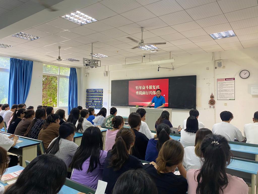 唐天卿以《百年奋斗谋复兴 勇毅前行兴伟业》为主题,结合真实的历史事件和人物,从五大意义、十个坚持、十个明确与八个确立等方面总结了党的百年奋斗重大成就和历史经验;解读了党的百年奋斗历程中汲取智慧和力量对科学把握党开创未来的时代要求,帮助学生进一步弄清楚“两个确立”的决定性意义;要求学生坚定对党的信任、对中国特色社会主义的信念、对全面建设社会主义现代化国家和实现中华民族伟大复兴的信心。