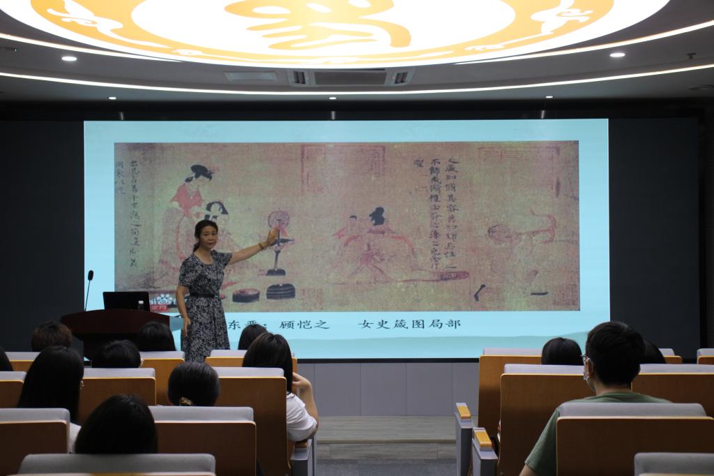 李琳教授以中国古代铜镜的历史为线索,介绍了铜镜的起源、发展、鼎盛、衰落的历史演变过程,通过历代铜镜的实物教学,向同学们直观的讲了解了铜镜的制作工艺和文化内涵。李琳教授重点阐释战国、两汉及唐代铜镜的形制特点,通过简明通俗的语言和仿制镜特点的对比介绍帮助学生对铜镜鉴定有了初步了解,用丰富的语言、生动的讲解激发了师生们对传统文化的热爱。