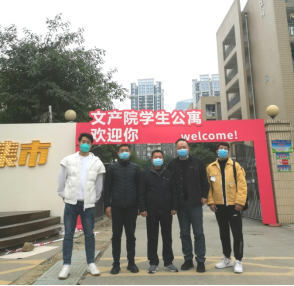 文博学院教职员工志愿者代表在学生公寓楼合影