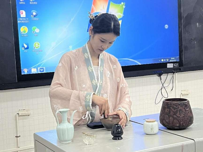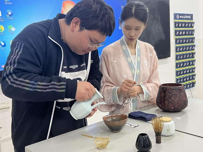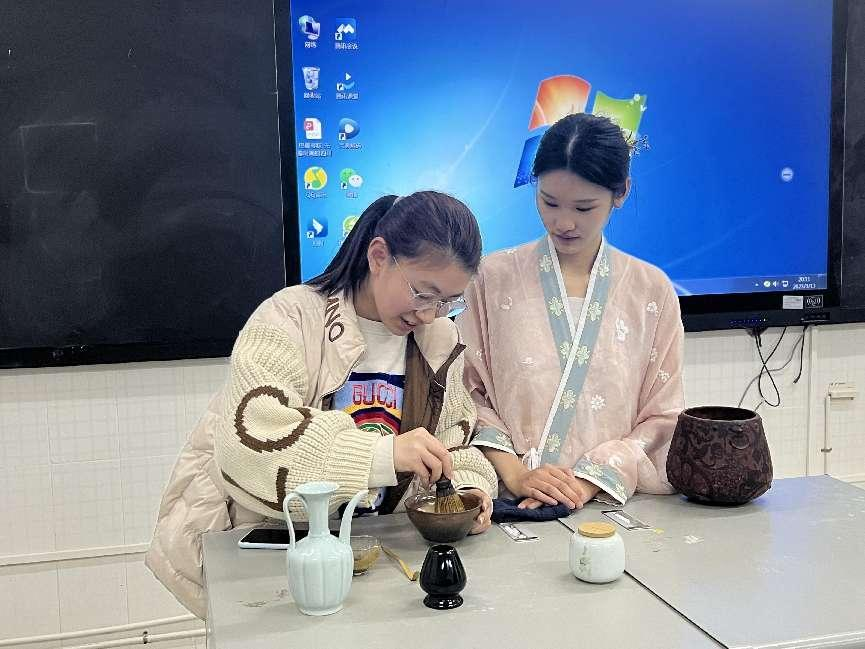 学生体验点茶技艺