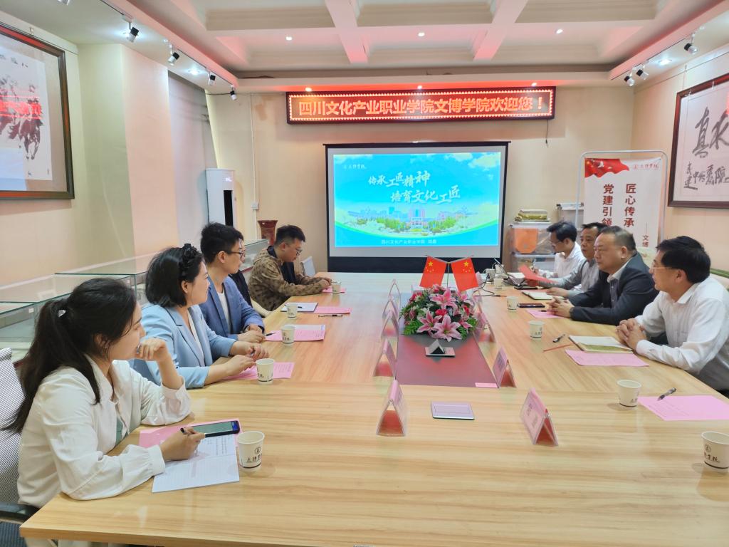 随着工艺美术品产业的快速发展,企业与高校之间的深度融合成为推动产学研一体化进程的关键力量。4月17日,四川工艺美术集团总经理、四川省工艺美术大师邓杰、三国文化研究中心副主任郭的非一行到我院开展调研及座谈交流。文博学院党总支书记唐天卿,院长岳湛参加座谈。