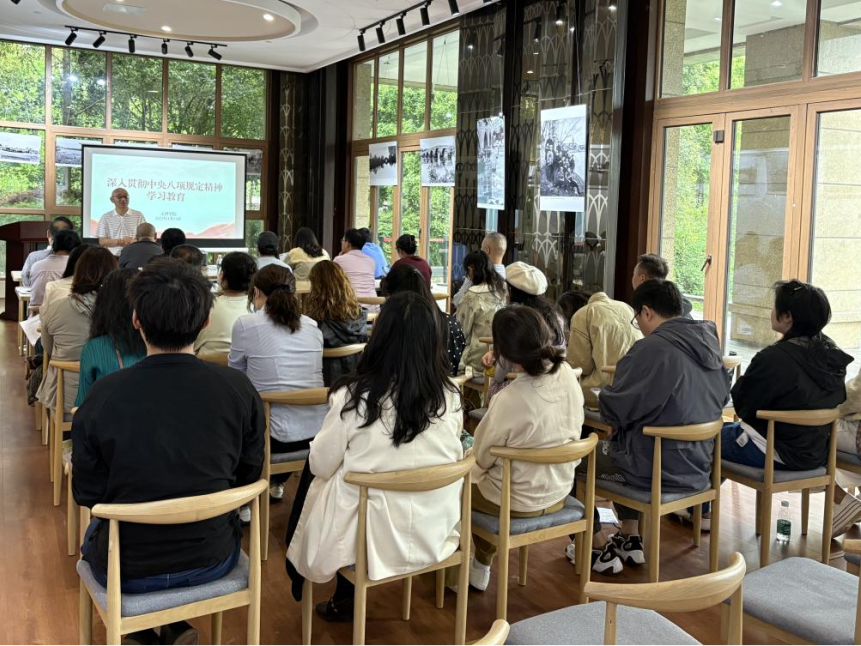 参观交流结束后,文博学院党总支组织全体教职工召开深入贯彻中央八项规定精神学习教育会。会议强调,在教育教学、科研合作、公务接待等工作中要严守纪律红线,倡导勤俭节约、务实高效的工作作风。此次活动既是一次深度的文博专业交流,也是一场生动的廉政教育实践。