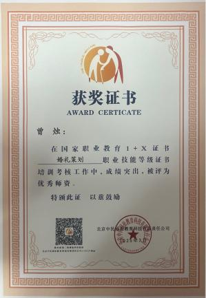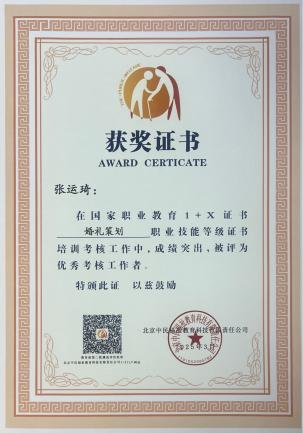 2025年4月11日-14日,社会福祉领域1+X证书工作总结表彰会在北京召开。我校工作成绩突出,被授予“1+X证书婚礼策划”2024年度优秀试点院校称号,文博学院教师曾烛被评为“优秀师资”,张运琦被评为“优秀考核工作者”。