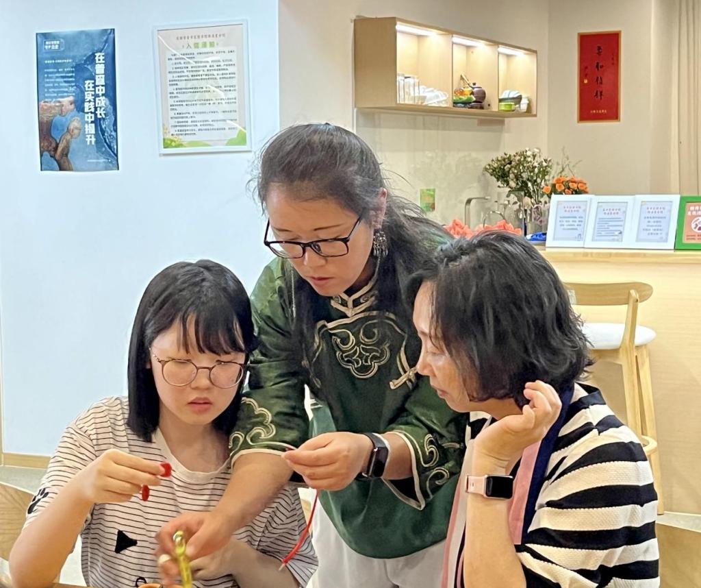近日,文博学院首饰设计与工艺专业教师林潇潇和学生参加了青羊区朗诗西溪里文化活动中心与府南街道石人南路社区联合主办的“非遗盘扣手作减压活动”,拉开了“西溪里公益夜校”活动D的序幕。活动邀请了30余位医护工作者代表与社区居民共同体验非遗文化魅力,在手作中释放工作压力。