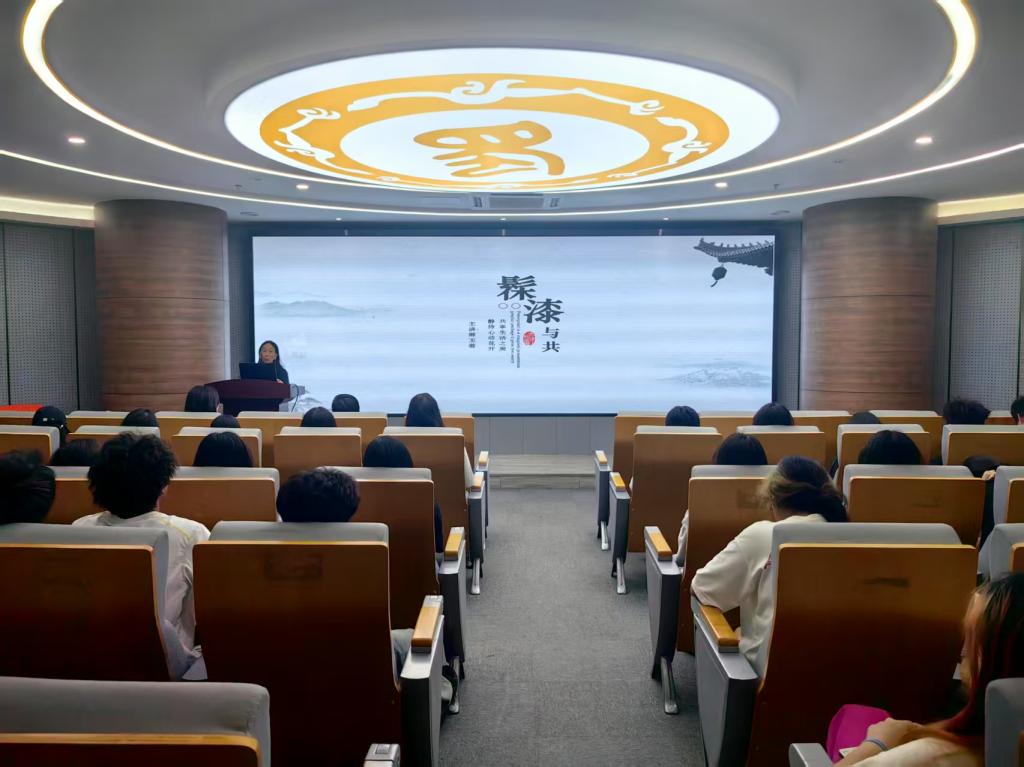 讲座中,卿玉蓉大师围绕漆艺文化及其与生活的融合分享了众多精彩案例,将漆艺术与专业学习紧密相连,生动阐释了文创设计与漆艺结合的实践路径,让师生领略了传统工艺的独特魅力与创新潜力。