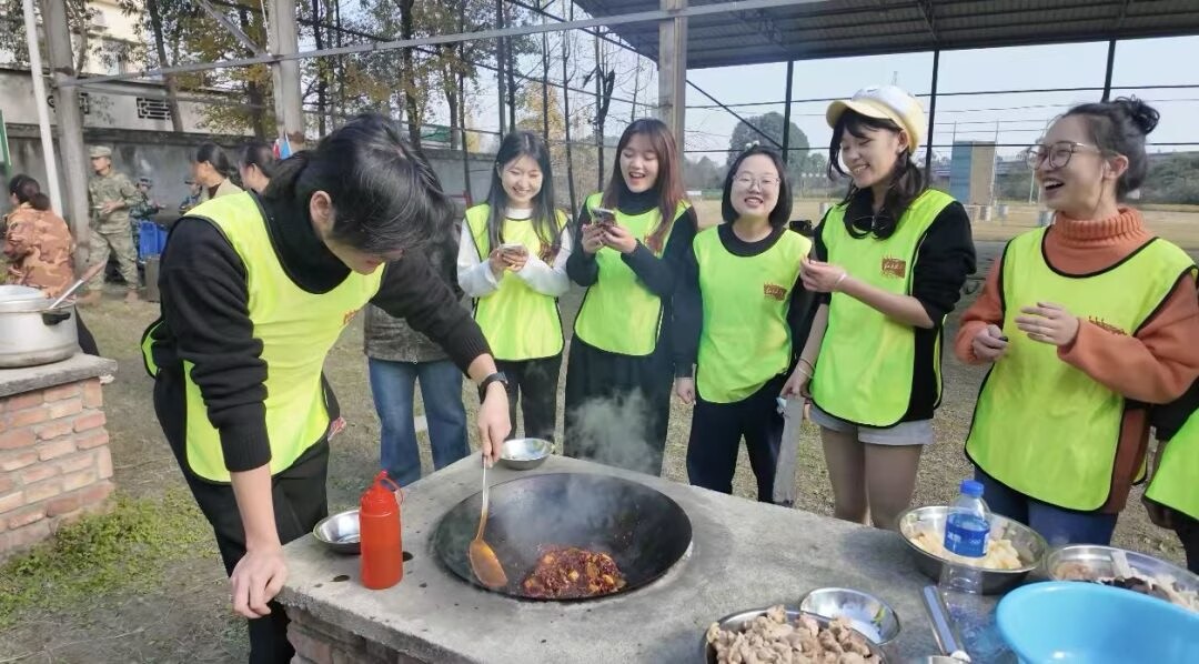 最令人印象深刻的傍晚“柴火鸡烹饪大赛”。 露天灶台前,昔日的学生干部化身“炊事班战士”,分工明确,各司其职。从备料到掌勺,从添柴到调味,大家在烟熏火燎中忙得热火朝天。一锅锅香气四溢的柴火鸡,不仅是味蕾的盛宴,更是团队凝聚力的生动体现——“就像我们的工作,只有每个人都贡献自己的力量,才能做出‘大餐’,服务好全体同学。”一位学生干部的感悟道出了大家的心声。