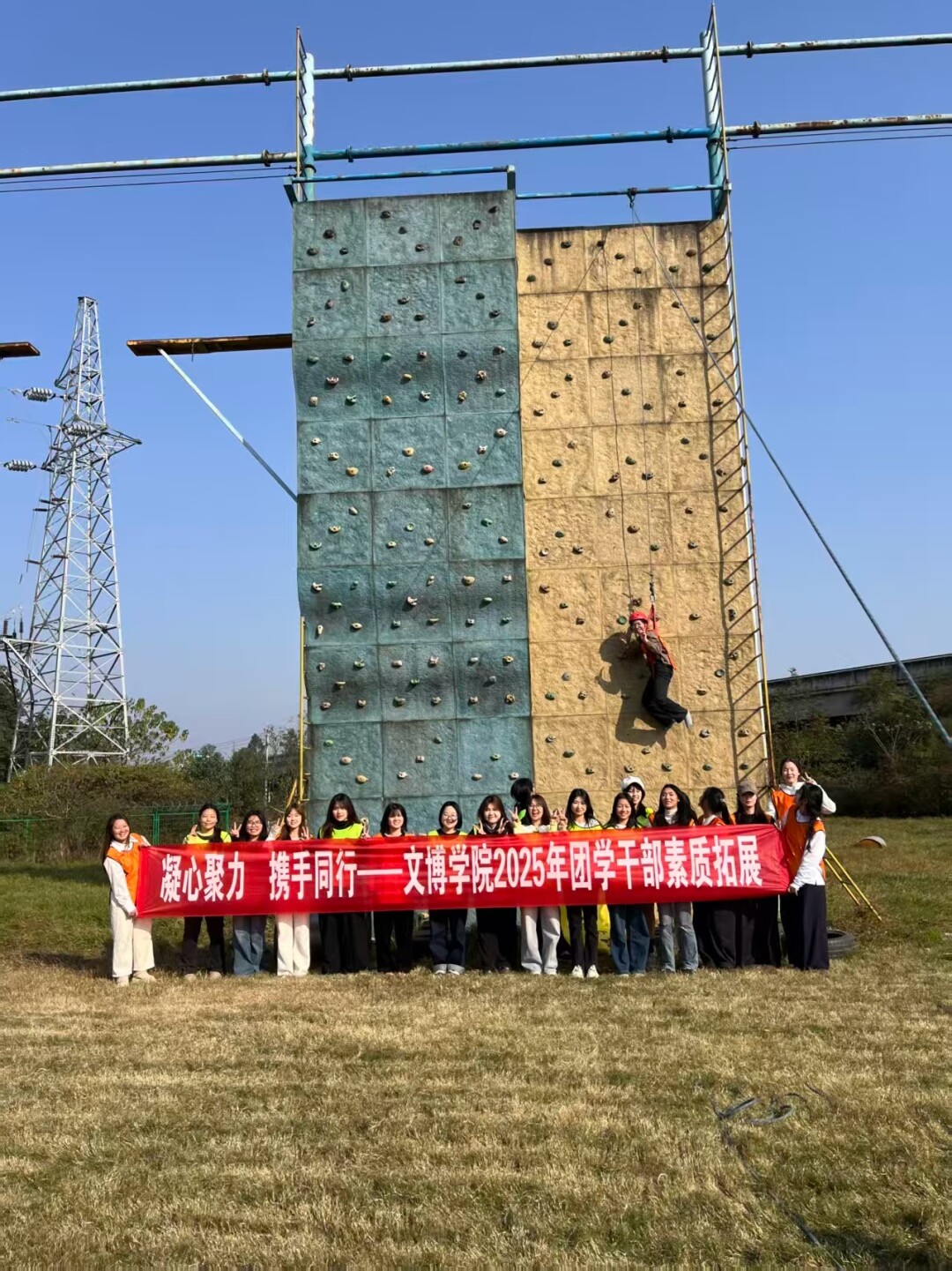为扎实推进学生团学队伍建设,12月4日,文博学院组织全体团学干部赴都江堰红色众行国防教育基地,开展了一场别开生面的素质拓展活动。活动以“凝心聚力,携手同行”为主题,旨在通过沉浸式、高强度的团队协作与个人挑战项目,全面提升学生干部的综合素养。