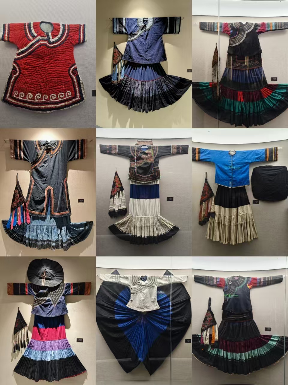 调研始于成都举办的“大山里的星野之火”越西文旅东方焕新活动,姜旭实地观摩了“生息、古老、焕新”彝族服饰创新展演,考察了本土品牌将非遗技艺与现代设计结合的活化案例。其后对四川博物院民族文物馆、邛崃火井镇成都尔玛民俗博物馆、成都华珍藏羌文化博物馆、彝族服饰文化之乡昭觉县(昭觉彝族服饰博物馆、彝族服饰文化街)、凉山彝族历史博物馆、凉山州博物馆的千余件文物及文献进行爬梳,从藏、羌、彝三族服饰的形制、色彩、纹样、工艺等多维度把握其历史脉络与艺术韵味,为专业教学积累了宝贵的视觉资料与理论素材。
