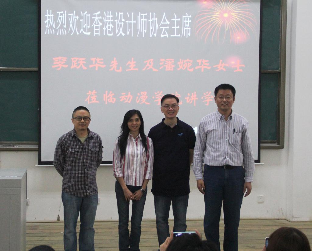 10月10日下午,我院特邀请香港设计师协会主席李跃华先生及潘婉华女士来院讲学。李跃华先生和潘婉华女士这次来成都是受成都市人民政府的邀请,参加由政府主导举办的大型文化创意和设计服务产业展会,并担任“2014成都创意设计周”评委、颁奖嘉宾。