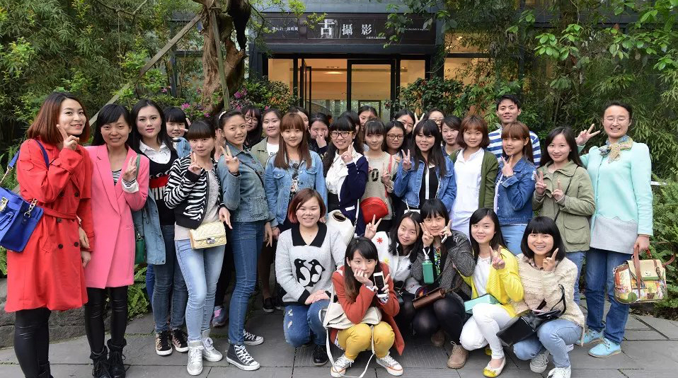 4月15日,我院2013级产品造型人物形象设计专业全体同学在教务科吴苗科长、辅导员黄思玫、专任教师曾璐的带领下前往成都古摄影婚纱摄影公司进行了为期一天的教学实践活动。