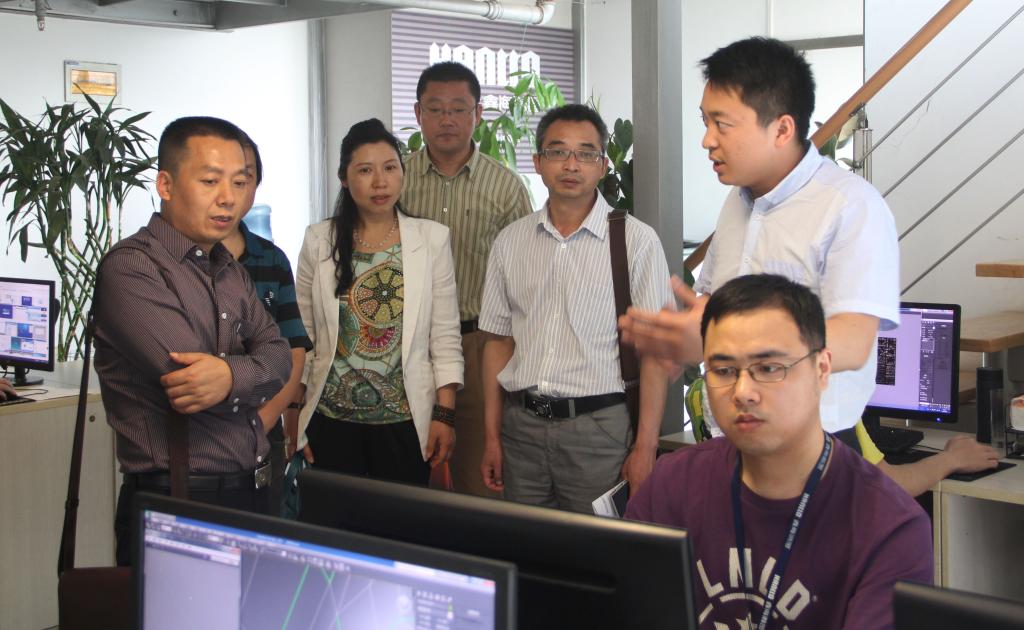 成都鑫海瀚图数字科技有限公司领导向学院调研组一行介绍了公司的概况,并着重介绍了实训基地的相关情况。自该基地2010年成立以来,双方一直致力于围绕“优势互补、资源共享、互惠互利、共同发展”的双赢理念,在办学模式、课程体系和实践教学方面不断进行探索和创新,2013、2014年连续两年开设“2+1”教育教学模式定向培养班,目前共有15名毕业生在公司就业。在调研过程中,李青、余社桥着重从教育教学改革、深化校企合作的角度与企业进行了探讨和交流。