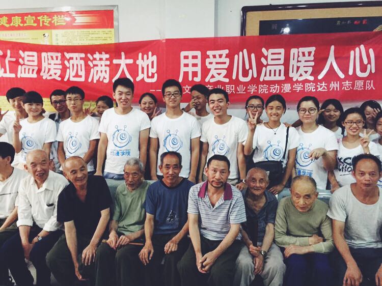 8月上旬,四川文化产业职业学院“大学生暑期三下乡社会实践”动漫学院达州分队在学院辅导员陈虹森老师的带领下前往达州市社会福利院和达州市光荣院开展爱心志愿服务。