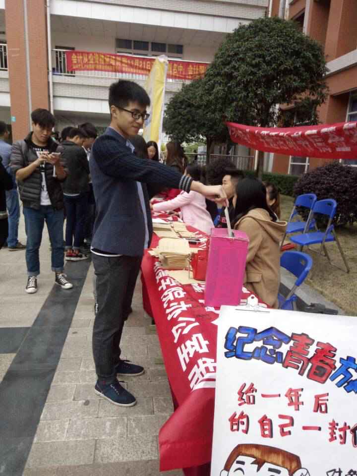 11月15日,我院在三教举行了为期一周的第三届“纪念青春,放飞梦想”——给未来的一封信学业规划活动。