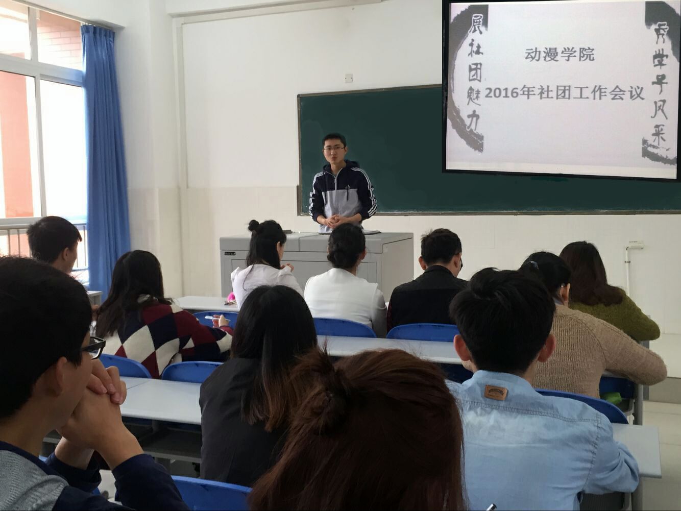 为深入贯彻共青团中央、教育部、全国学联下发的《高校学生社团管理暂行办法》精神,进一步规范我院学生社团的管理,切实做到将思政工作与社团工作相结合,深化学生社团的育人功能,积极促进学生社团的健康发展,4月5日中午,我院在第三教学楼210教室召开了2016年社团工作会议,学院社团管委会主任唐雷老师、各社团指导老师、各社团主要学生负责人和社团管理委员会全体学生干部参加了会议,会议由唐雷主持。