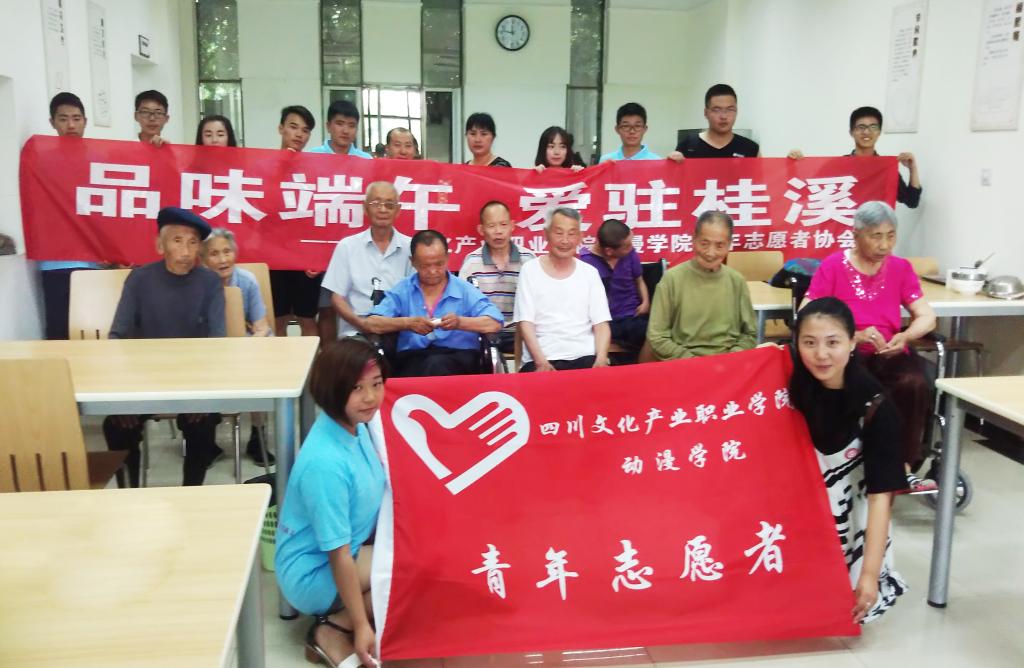 在端午这个中华民族古老的传统节日即将来临之际,我院青年志愿者协会14名学生志愿者于6月4日携带粽子、水果等礼物,慰问了成都高新区桂溪街道医养融合服务中心的老人们,陪伴老人们度过了一个愉快的周末。