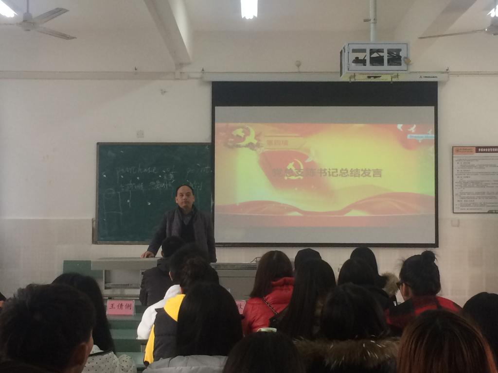 12月12日中午,动漫学院党总支在第三教学楼211教室举行第二届院级党课开班仪式。学院党总支书记陈吕容、第一党支部全体党员以及入党积极分子参加了开班仪式。