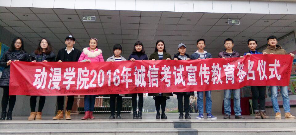 为促进优秀学风养成,动漫学院学生会学习部于12月15日—19日在第三教学楼开展诚信考试宣传教育签名活动。活动得到学院师生的积极响应和广泛参与,大家纷纷在签名横幅上庄重地签上自己的名字,承诺严格按照诚信考试的要求杜绝作弊,诚信应考。
