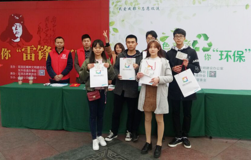 3月14日上午,为宣传雷锋精神,推动大学生志愿服务常态化,动漫学院青年志愿者协会与四川现代职业学院青年志愿协会的小伙伴们结伴到棠湖公园进行联谊交流,并一起参加双流志愿者协会举办的“绿色双流 用爱延续”学雷锋主题公益活动。