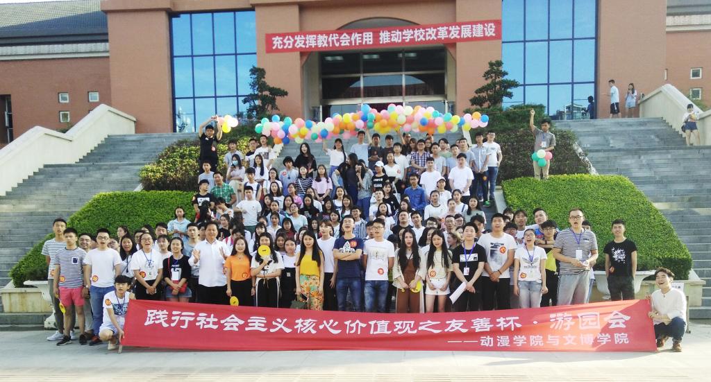 为进一步加深动漫学院、文博学院学生的传统友谊,弘扬“友善”社会主义核心价值观,近日两院在图书馆前广场举行第三届趣味游园会。文博学院副院长袁干劲、两院辅导员老师与学生一起参加了本次活动。