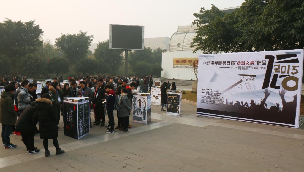 为展示我院在毕业设计工作中的举措与成效,搭建大学生毕业作品交流展示平台,鼓励和支持大学生积极参与专业学科研究、技术开发和社会实践等创新创业活动,不断提高大学生的毕业设计质量和创新创业能力,动漫学院于12月20日至21日在艺体中心广场举办了以“动漫之韵”为主题的2018届毕业设计作品展。