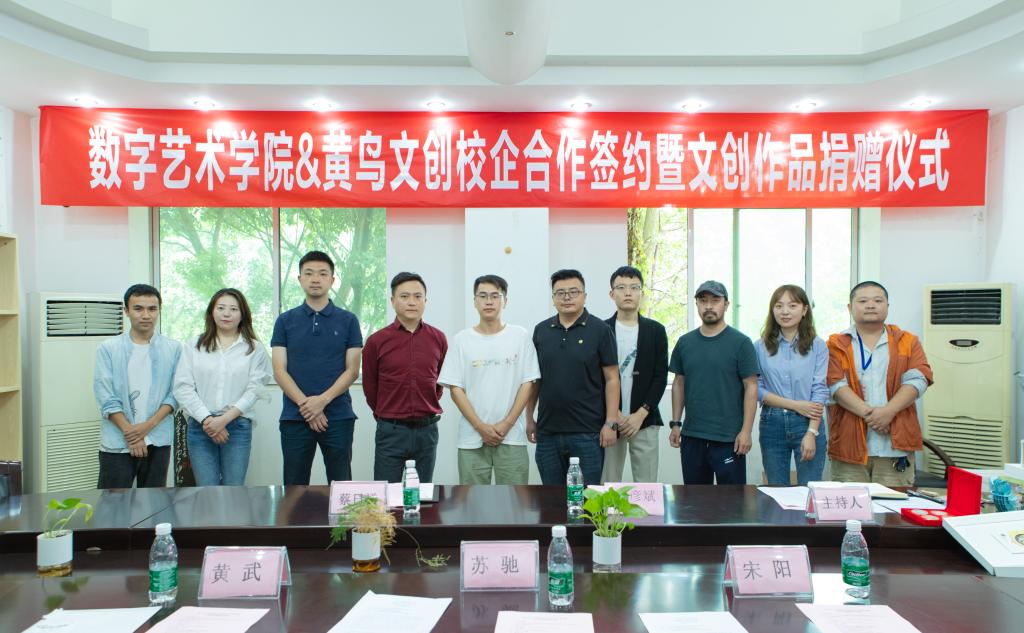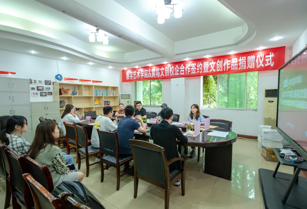 2021年9月16日上午,数字艺术学院与成都黄鸟文化创意有限公司在温故楼210会议室举行校企合作签约暨文创作品捐赠仪式。