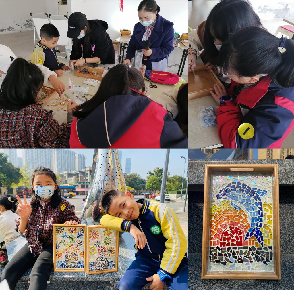 老师和同学们结合自己的专业向大家介绍了室内软装色彩搭配在室内装饰中的作用,讲解如何通过合理的色彩搭配,将家中的废弃物品二次利用,再次焕发装饰的功用,践行节约环保、可持续再生的环保理念。活动现场,同学们通过马赛克拼贴画的制作流程示范,引导居民掌握配色思路和制作技巧,使作品画面呈现更加和谐美观。在同学们的指导和帮助下,一个个兼具装饰性和艺术性的马赛克拼贴艺术托盘作品在居民的手中展示出来。