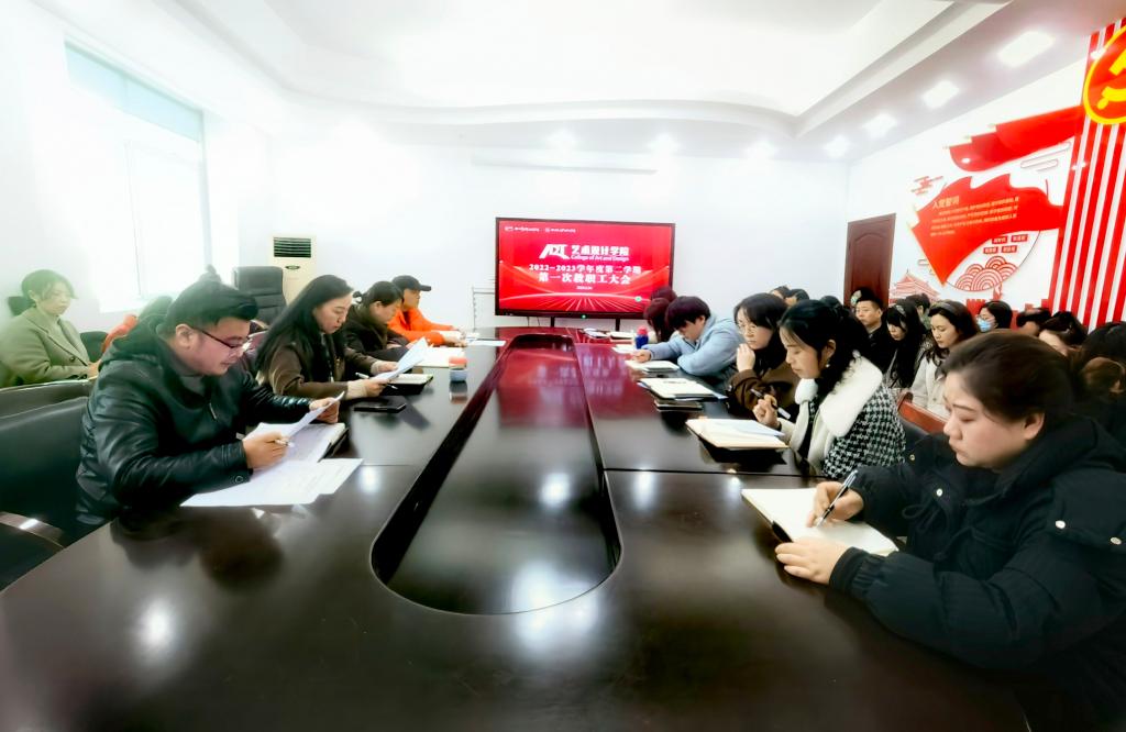 2月24日中午,艺术设计学院在温故楼210会议室召开2022-2023学年度第二学期第一次全院教职工大会。学院党支部书记何东、院长詹颖、党支部副书记贾仕延、副院长蔡日祥及全体行政人员、专任教师参加了会议。会议由院长詹颖主持。