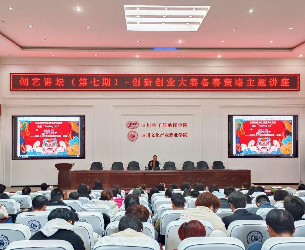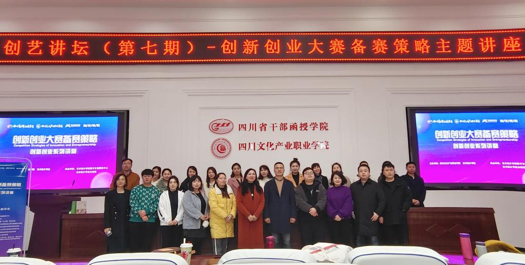 赵华东就创新创业大赛备赛策略从创新创业特质分析、市场环境与项目分析、项目判断、知识储备四个方面展开论述,结合新旧时代发展背景的变迁向大家阐明了“创新是发展的必然”,并详细分析了不同类型的项目所对应的赛道类别,为备赛师生点明方向。他针对我校专业特色,分享了三个文创类国赛获奖项目,让在场师生对如何备赛有了更清晰的认知。在针对文化区域性的分析中,赵华东讲解了蜀地所具有的独特鲜明的文化优势,他认为深入探索地域性、民族性、多元性,合理利用区域资源优势,秉持社会价值与商业价值并存的理念,打造西南特色文创产品,可作为我校创新创业团队备赛的重要切入点。赵华东还同几位带队备赛的老师就备赛策略进行了交流和心得分享,在场师生纷纷表示讲座内容丰富、理论扎实、案例鲜明、干货满满,对于创新创业大赛备赛具有重要的指导意义。