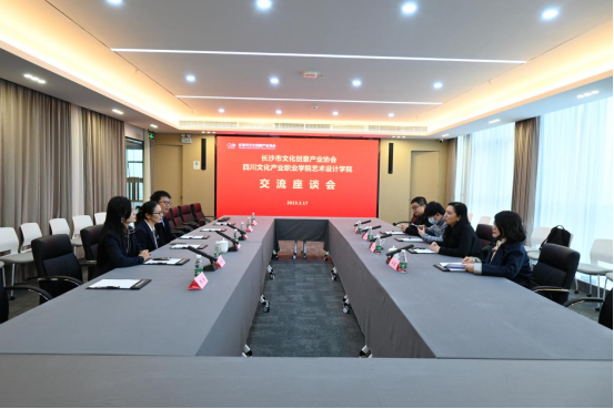 随后,詹颖一行来到长沙市文化创意产业协会座谈交流。座谈会上,双方就各自的领域作了介绍,詹颖表示,长沙的企业很有活力,在文化和科技融合上有诸多创新,四川文化产业职业学院作为国内专注于文化产业的职业高校,希望能够加强跟马栏山文创园及相关文化企业的联系,加深了解企业的人才需求,加强校企合作,彼此赋能,加强对口人才输出,助力文化产业发展。