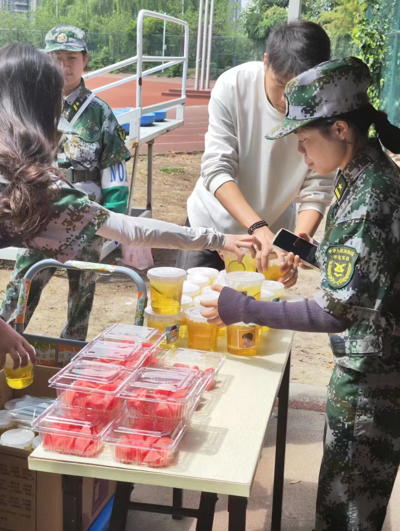 团委学生会为同学们准备了柠檬水和西瓜,慰问参训学生,鼓励各位同学刻苦训练、争当优秀,让莘莘学子在炎炎夏日感受到了丝丝清凉,也感受到了学院的细致关怀。