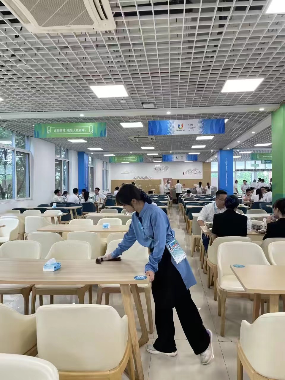 艺术设计学院张春梅、艾鑫颖、欧馨、单宇欣、唐偲怡、陈清华、熊福义、赵宇、刘诗雨9名学生作为志愿者参与了大运会餐饮部志愿服务活动,圆满完成30个工作日的志愿服务工作,每餐接待了大约4000余人次的工作人员,志愿时长近300小时。