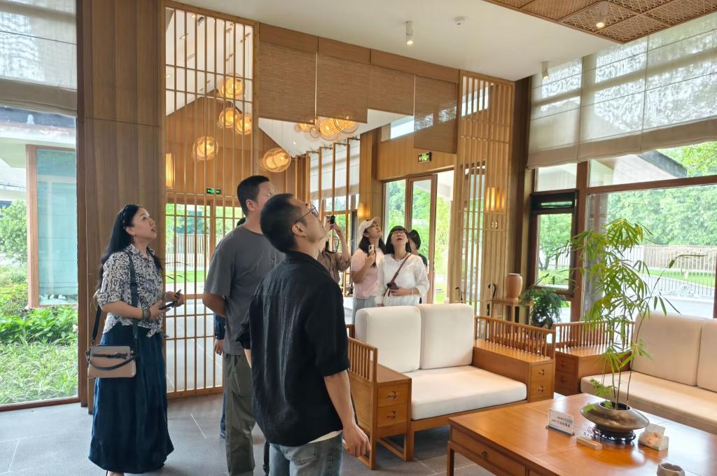 会后,詹颖一行参观了青神国际竹艺城发展投资有限公司打造的湿地公园和园林酒店,拜访了省级非遗传承人、竹编大师殷超,对当地竹文化产业发展现状进行了深入调研。