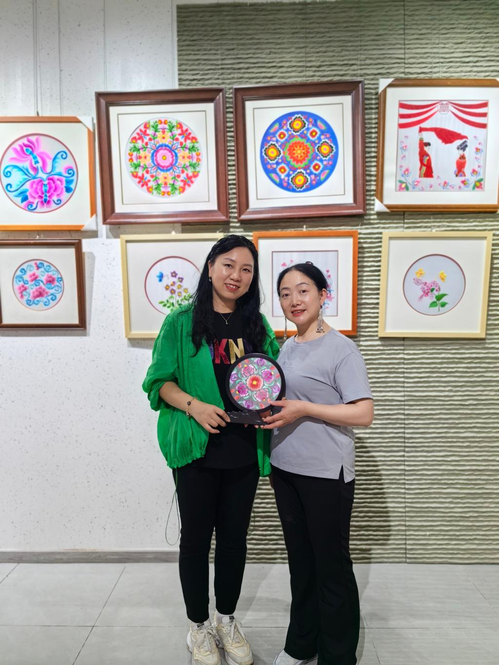 仪式结束后,詹颖一行参加了由四川省中华职业教育社主办的助力北川羌绣产业发展专家讨论会。会上,詹颖介绍了四川文化产业职业学院在羌绣传承、保护和创新方面的具体做法和典型成果,展示了艺术设计学院研发的羌绣文创产品,赢得了与会专家的高度评价。詹颖还就如何进一步推动羌绣文创产品的市场化、品牌化提出了宝贵建议。研讨会结束后,詹颖一行专程拜访了北川省级羌绣传承人陈云珍女士。双方就羌绣在色彩运用、图形图案设计等方面的创新做法进行了深入交流。此次交流不仅加深了双方对羌绣文化的理解和认识,也为未来的合作奠定了坚实基础。