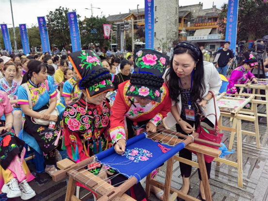 7月9日下午,詹颖一行出席了启动仪式。此次活动主题为“千人共绣同心圆,时尚非遗新农人”,旨在通过大规模的技能培训和创意激发,促进羌绣技艺的传承与发展,同时培养更多的优秀传承人,推动传统羌绣与现代时尚元素相结合,焕发新生。