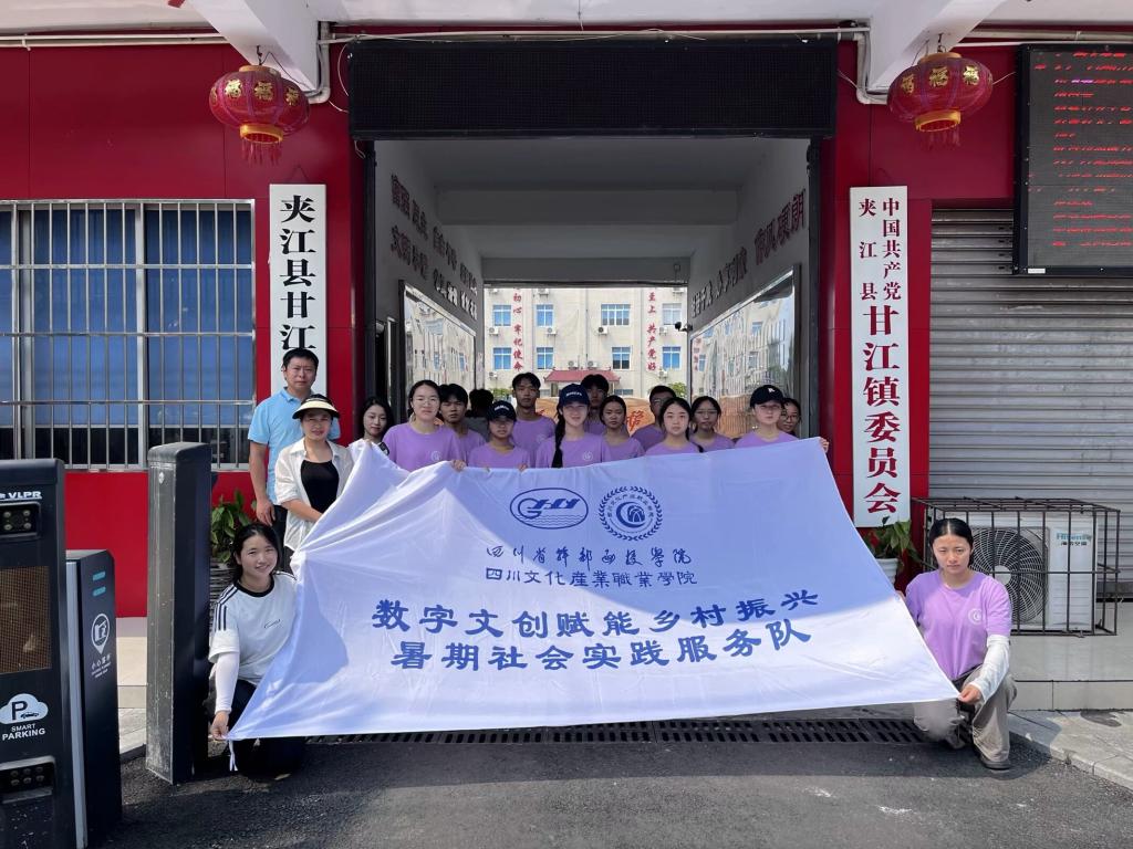 8月15-25日,四川文化产业职业学院艺术设计学院“数字文创赋能乡村振兴”暑期社会实践服务队在乐山市夹江县甘江镇开展了为期十天“暑期三下乡”社会实践活动,助力夹江县2024第二届“百里水乡——乡村电竞农旅嘉年华”活动顺利举行。