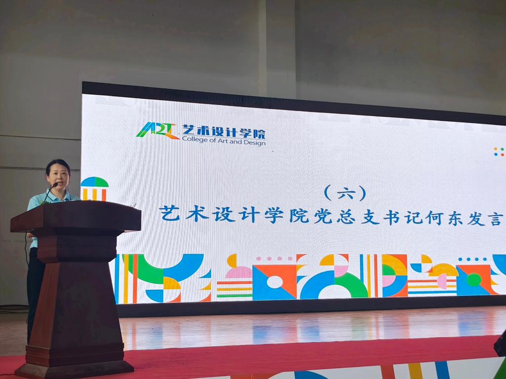 何东向新生表示欢迎,她希望同学们坚持梦想,不偷懒、不懈怠、不放弃,在大学这个人生最美的篇章里,以今日为起点,主动学习、学会学习、提升境界、健康成长,实现艺术设计学院师生共同的育人和成长梦想。