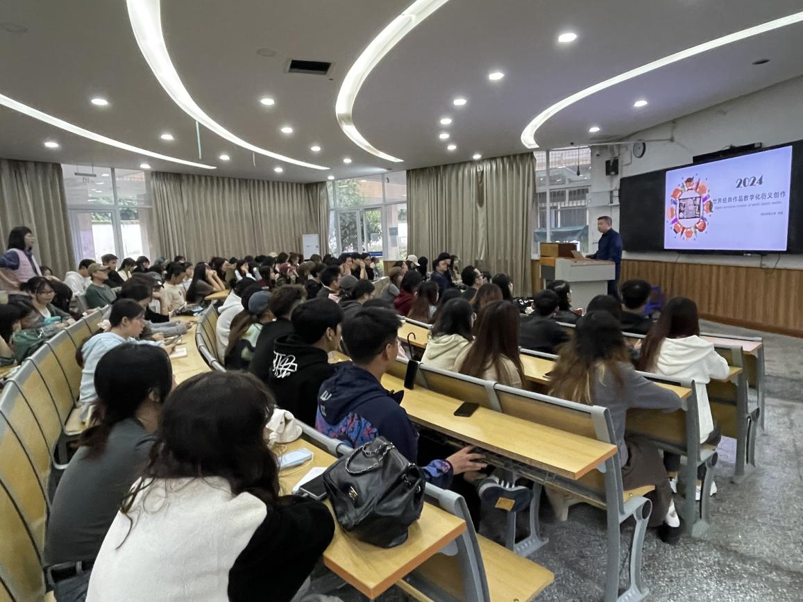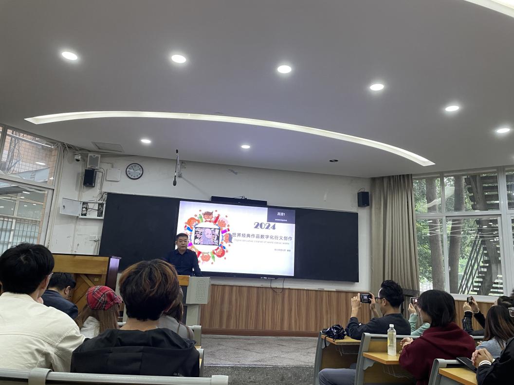 2024年10月18日下午,艺术设计学院在一教一阶教室举办第十六期“创艺讲坛”。本次讲座由室内艺术设计专业主办,主题为“作品数字化衍义创作”,主讲人为四川师范大学副教授郑轶,学院师生100余人参加。